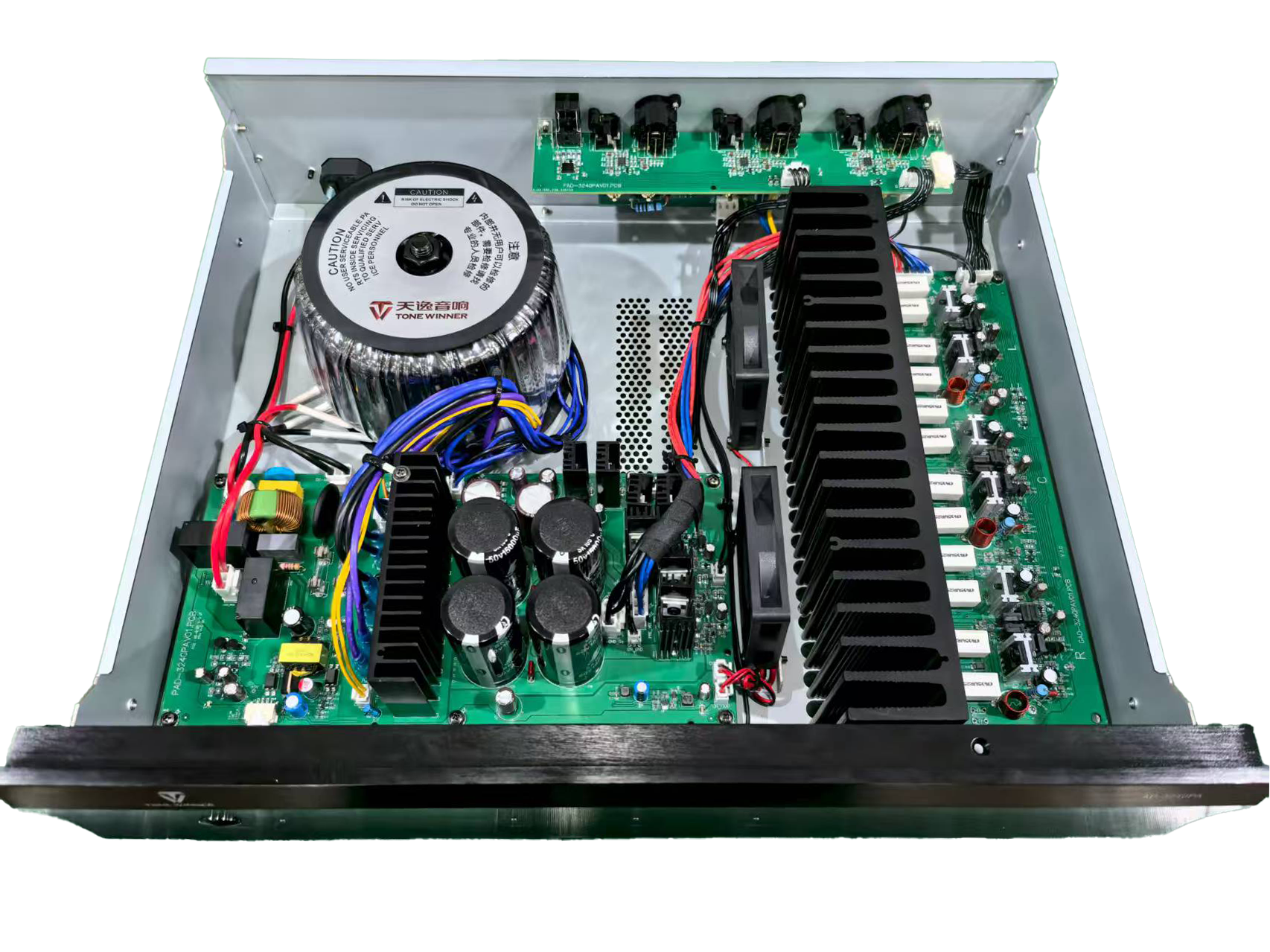 Forsterkeren er bygget med fokus på effektivitet, stabilitet og lav varmeutvikling. Dette gir pålitelig drift over tid, samtidig som strømforbruk og varme holdes på et kontrollert nivå – selv ved høy belastning.