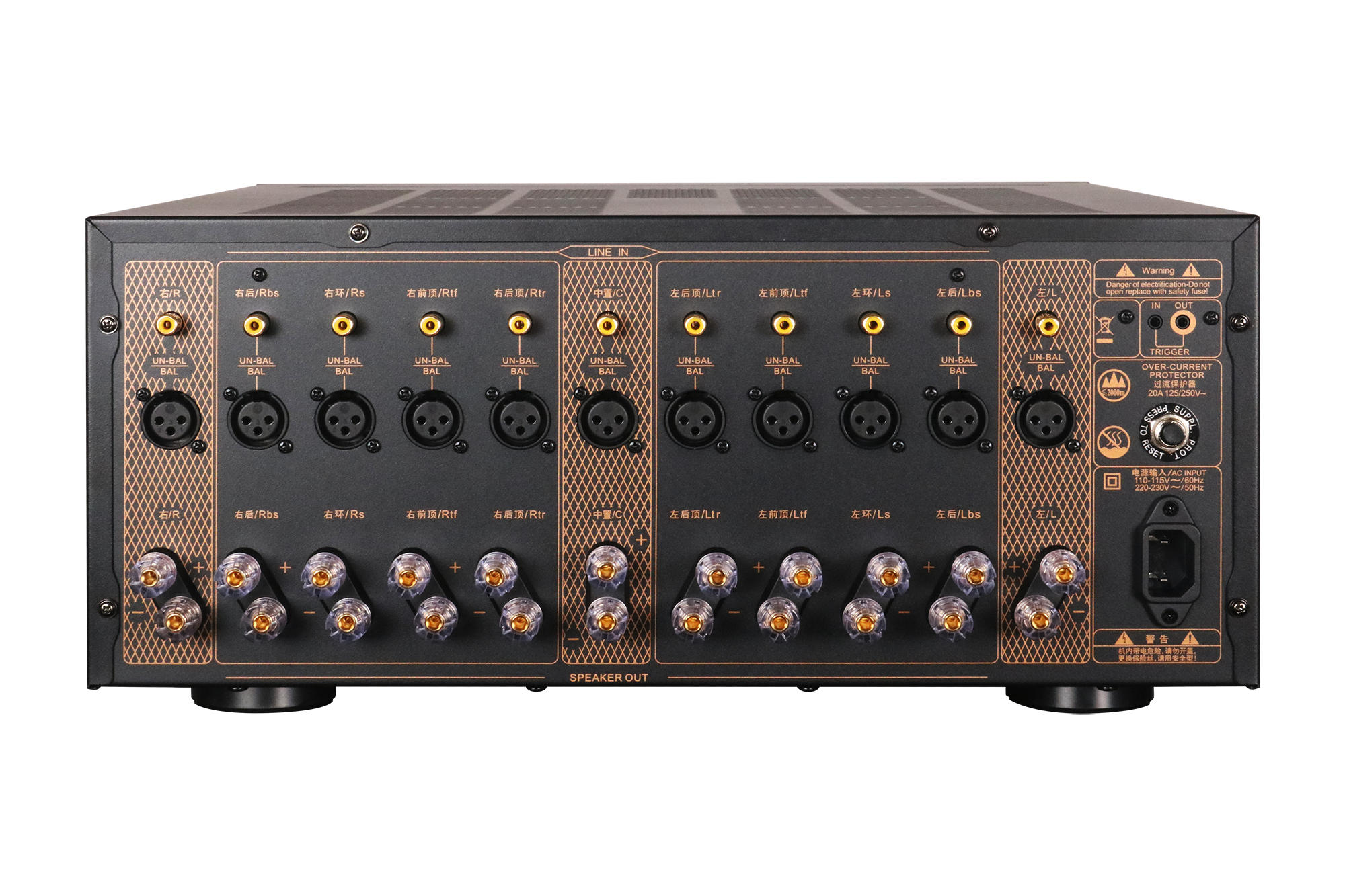 • 11 uavhengige forsterkermoduler – hver kanal har sin egen diskrete krets for optimal lydkvalitet.
